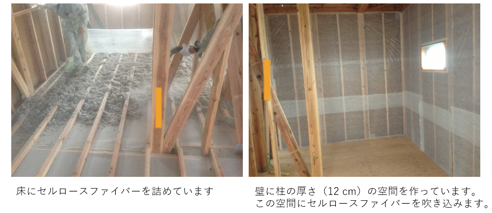 標準の断熱材よりも プラス70万円 ということでしたが、WB工法仕様に比較して安いこともあり、セルロースファイバーを断熱材に使用するようにお願いしました。