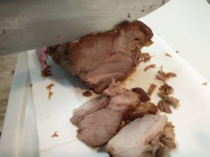 普段利用しているスーパーではブロック肉は気軽には購入できません。そこでお肉屋さんにオーダーします。1Kgの豚肩ロース肉を!