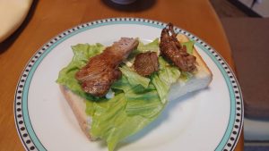 まずは、朝食時、パンの上にレタスと一緒に載せます。