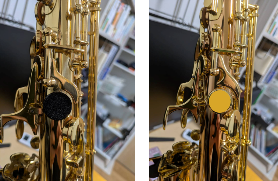 A-500は全体がイエローブラスです。A-WO20は、ネック管体はブロンズブラスですが、オクターブキー、補強板、接合部はイエローブラスです。