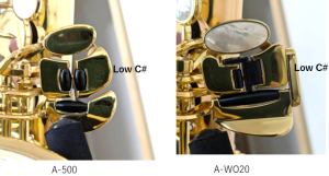 太い棒1本のオクターブキーのA-500(A-WO10と同じ形)、細い棒2本のオクターブキーであるA-WO20は、見た目が大きく異なります。